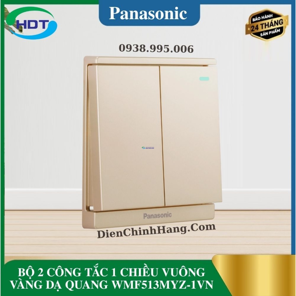 BỘ 2 CÔNG TẮC 1 CHIỀU VUÔNG VÀNG DẠ QUANG WMF513MYZ-1VN