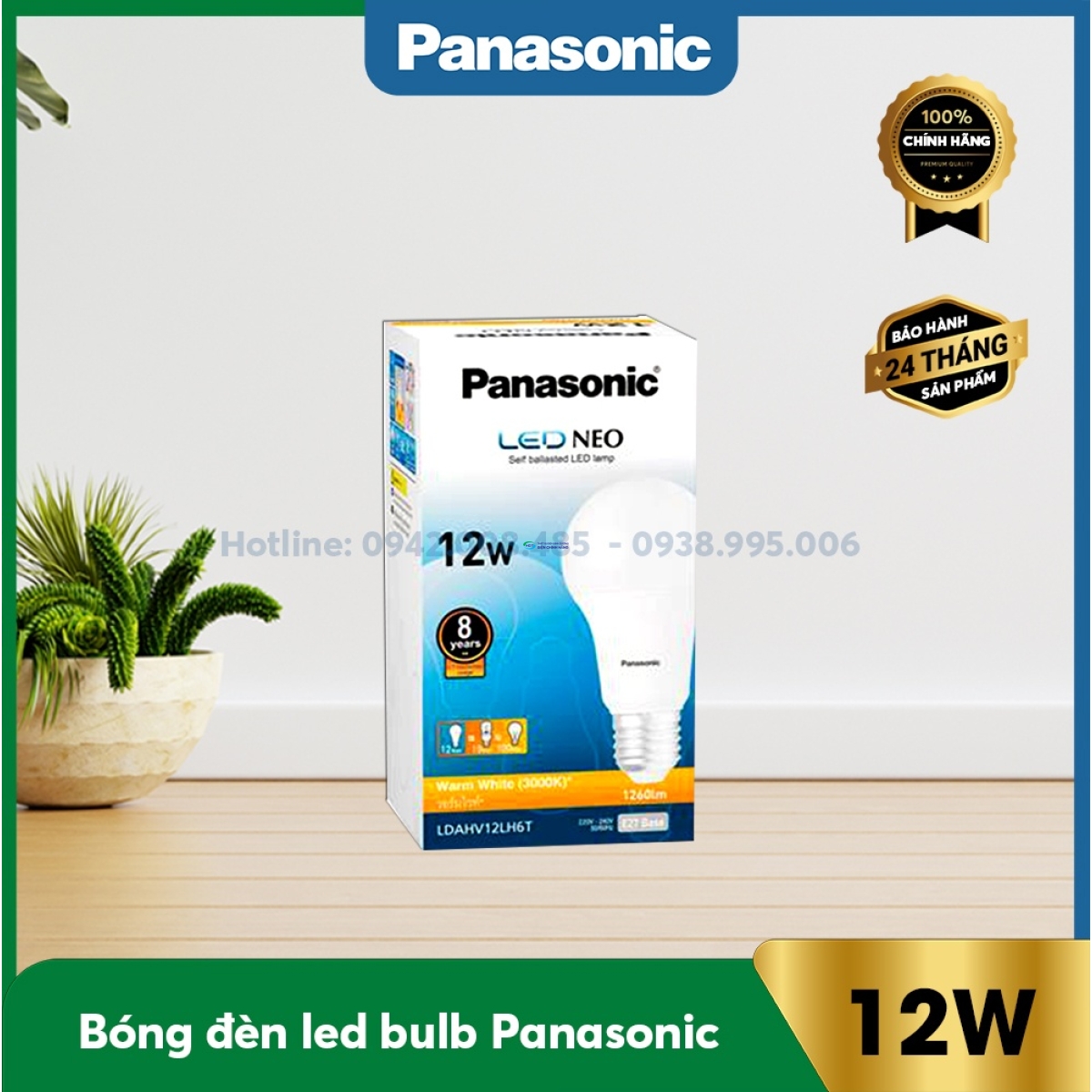 Công suất (W): 12W Nhiệt độ màu: 3000K Điện áp định mức (V): 220V Điện áp hoạt động (V): 110-240V Quang Thông (Lm): 1260 CRI: Ra80 Tuổi thọ (giờ): 12000 Qui cách đóng gói: 10 cái/ thùng Chính sách bảo hành và đổi mới Chính sách bảo hành:24 tháng Chính sách đổi mới: Đổi mới trong vòng 24 tháng kể từ ngày sản xuất
