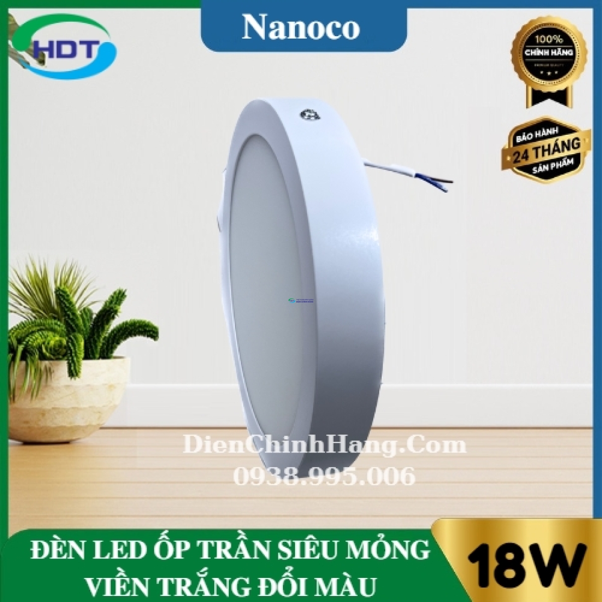 Màu ánh sáng: Đổi 3 màu Vàng 3000K-Trung tính 4000K-Trắng 6500K