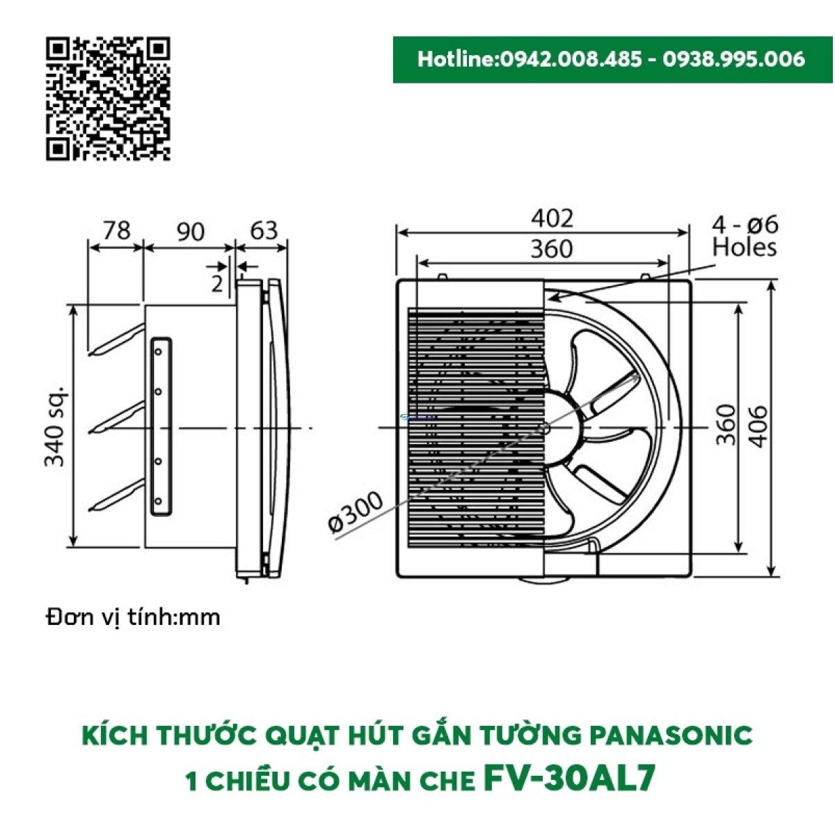 Quạt hút gắn tường Panasonic 1 chiều có màn che FV-30AL7